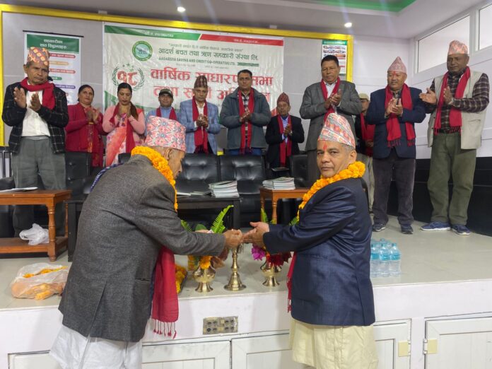 आदर्श बचत तथा ऋण सहकारी संस्था लि. पोखरा– १३, आर्वाको शुक्रवार सम्पन्न १८ औं वार्षिक साधारण सभा तथा सातौं अधिवेशनले सुर्यप्रसाद बरालको अध्यक्षतामा नौं सदस्यिय नयाँ कार्यसमिति सर्वसम्मत निर्वाचित गरेको छ ।