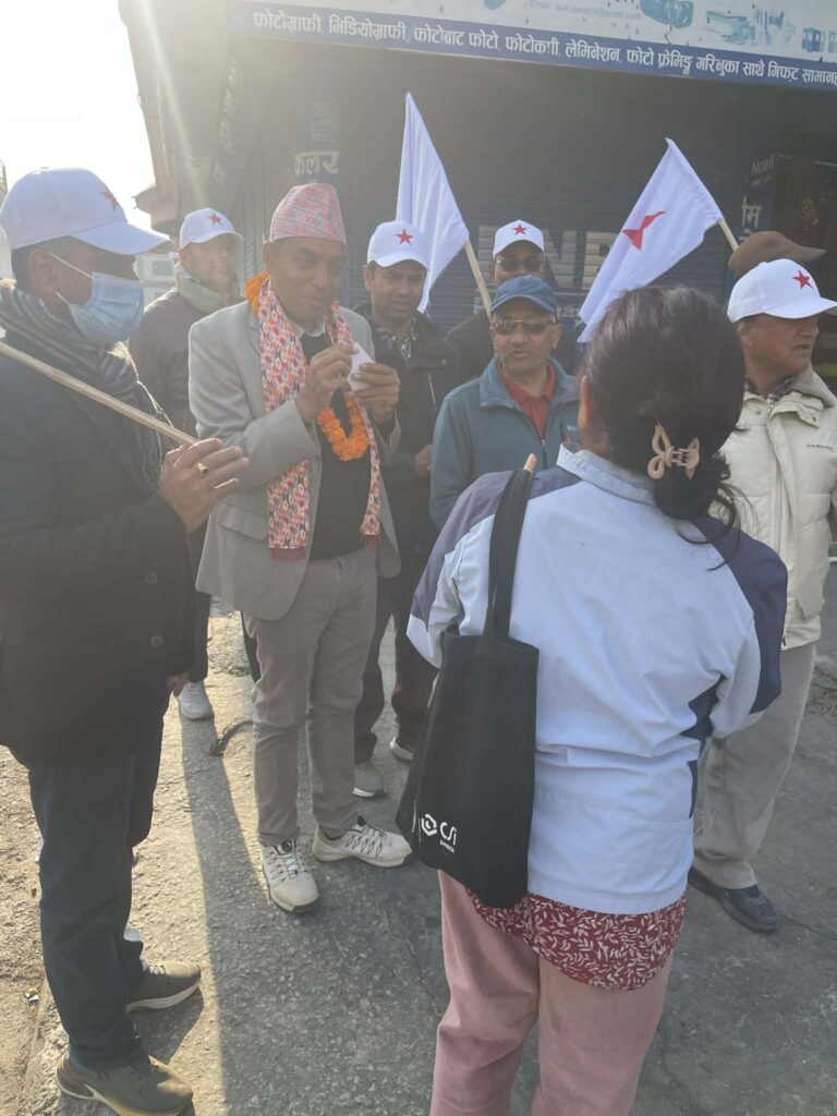 नेपाली कम्युनिष्ट पार्टीको तर्फवाट कास्की क्षे नं २का उमेद्धवार किरण थापा चुनावी प्रचारका क्रममा यतिवेला घरदैलोमा व्यस्त देखिएका छन् । घरदैलोका क्रममा उमेद्धवार थापाले मतदाता भेटघाट गर्ने, स्थानीय समस्या वुझ्ने, मतदातासंग अन्तरक्रिया गर्ने कामहरु गरिरहेका छन् । शनिवार उमेद्धवार थापा आफ्ना चुनावी सहयोगीहरुका साथ पोखरा महानगरपालिका वडा नं ८मा चुनाव प्रचार गर्दै थिए ।