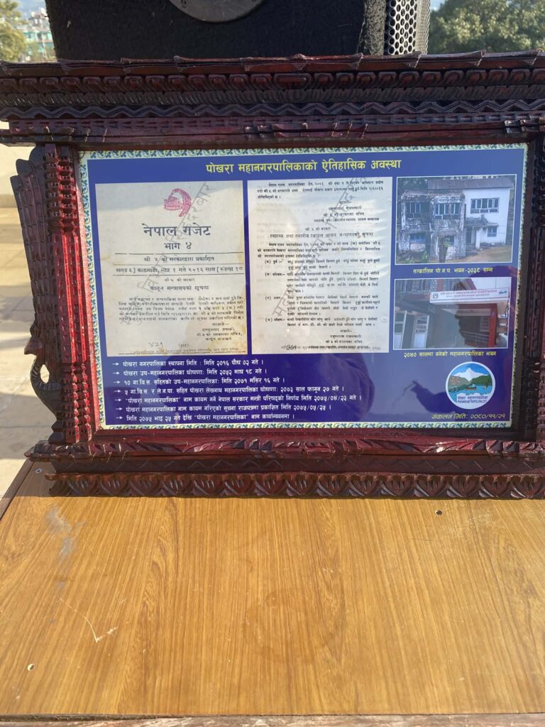 पोखरा महानगरपालिकाले पौष २ गते भव्य रुपमा स्थापना दिवस मनाउने भएको छ । आज देखि पौष १ गते सम्म बिभिन्न कार्यक्रम गरिने र पौष २ गते स्थापना दिवसको मुल समारोह हुने आज पोखरामा पत्रकार भेटघाट कार्यक्रमको आयोजना गरि पोखरा महानगरपालिकाका प्रमुख धनराज आचार्यले जानकारी दिए । २०१६ साल भाद्र १ गते श्री ५ को सरकारद्धारा प्रकाशित नेपाल गजेट भाग ४ मा पोखरा वजार ईलाकालाई मिति २÷९÷२०१६ देखि नगरपालिको तोकिदिएको नेपाल गजेट वाचन गरेर २०१६ साल पौष २ गते पोखरा नगरपालिका स्थापना भएको प्रमुख आचार्यले वताए । स्थापना दिवसका अवसरमा २०५२ सालमा प्ररम्भ भएको र विचमा स्थगित रहेको पोखरेली नवरत्न सम्मान लाई निरन्तरता दिईने प्रमुख आचार्यले वताए । त्यसैगरि सर्वोत्कृष्ट, उत्कृष्ट र कर्तव्यनिष्ट गरि ११ जना कर्मचारीलाई सम्मान गरिने छ । एसईई परिक्षामा ४ जिपिए अंक प्राप्त गर्ने ६७ जना विद्यार्थीहरुलाई सम्मान गरिने, कक्षा ८ मा ४ जिपिए अंक प्राप्त गर्ने १२ जना विद्यार्थीहरुलाई सम्मान गरिने, ६० जना उत्कृष्ट शिक्षकहरुलाई सम्मान गरिने, कक्षा ८ को परिक्षामा सत प्रतिशत नतिजा ल्याउन सफल १५ वटा र एसईईमा सत प्रतिशत नतिजा ल्याउने ४९ विद्यालयलार्ई तथा संस्थागत तर्फ १÷१ बिद्यालयलाई सम्मान गरिने छ । त्यसै गरि उत्कृष्ट ३ वटा वडाहरु, नियमित समयमा कर तिर्ने उत्कृष्ट करदाता , उमेरको जेष्ठताको आधारमा जेष्ठ नागरिकलाई महानगर माता÷ पिताको रुपमा सम्मान गरिने प्रमुख आचार्यले वताए ।