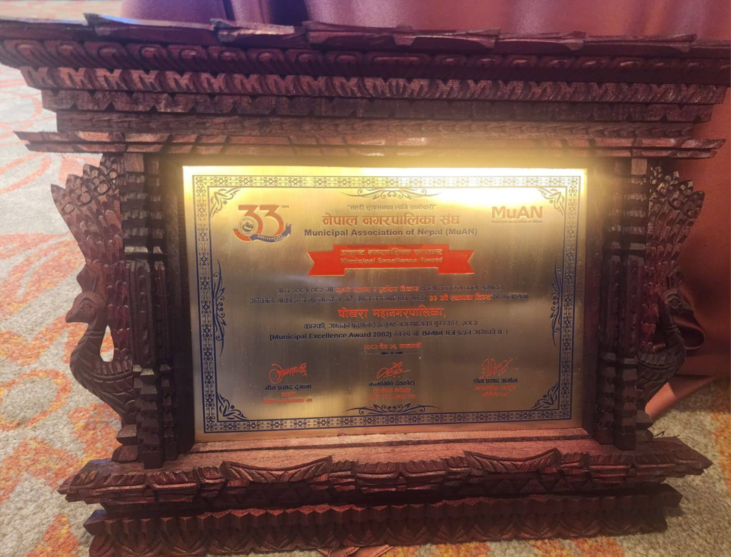 सहरी योजना, पूर्वाधार विकास र विपद् व्यवस्थापनमा विशेष कार्यसम्पादन गर्दै देशभरका नगरपालिकामध्ये ९५ प्रतिशत अङ्क प्राप्त गरी पोखरा महानगरपालिका सर्वोत्कृष्ट घोषित भएको छ । नेपाल नगरपालिका सङ्घको ३३औँ वार्षिकोत्सवको अवसरमा पोखरा महानगरपालिकालाई उत्कृष्ट नगरपालिका अवार्ड प्रदान गरिएको हो ।