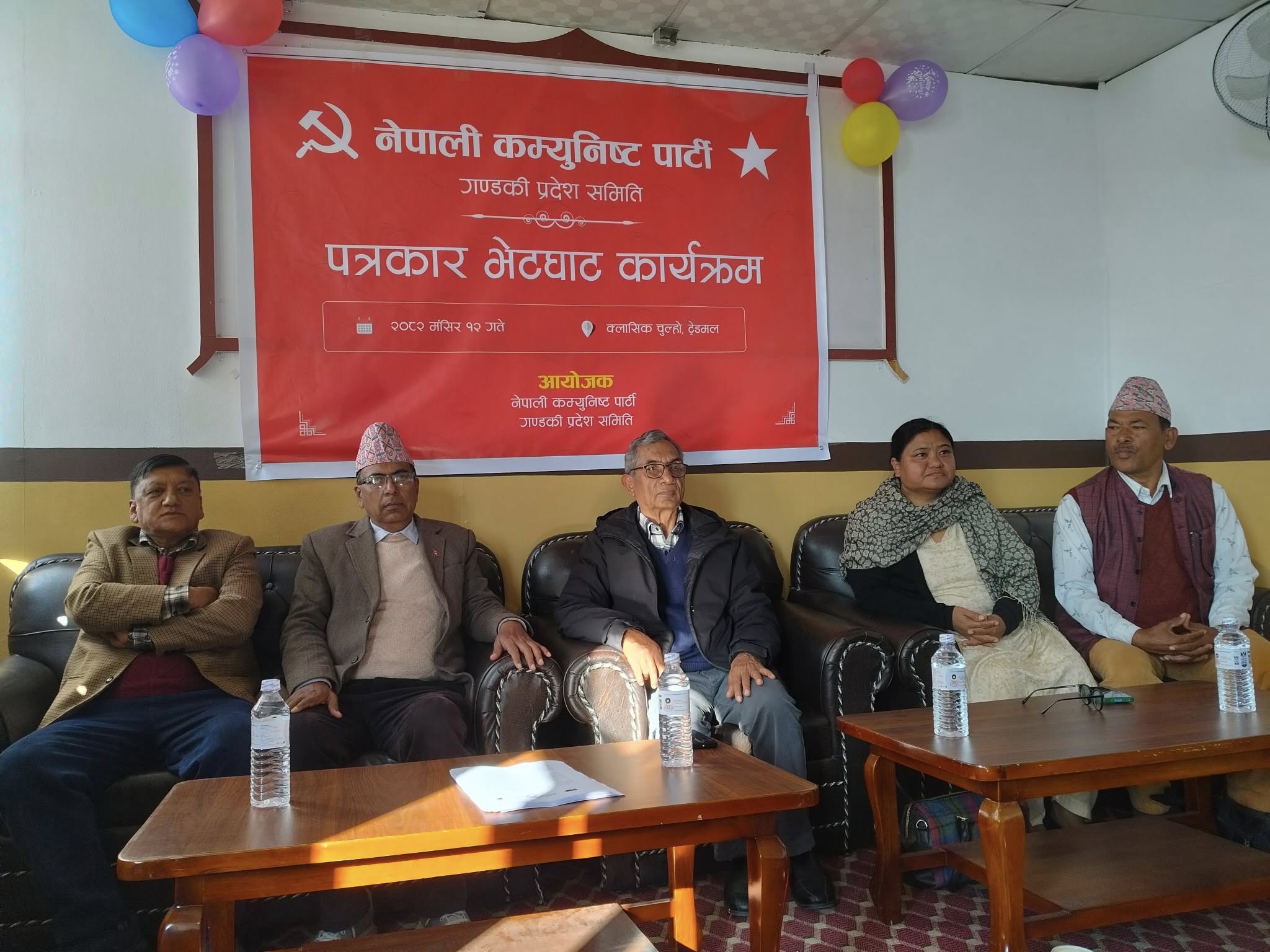 पत्रकार सम्मेलनलाई संवोधन गर्दे नेपाली कम्युनिष्ट पार्टिका नेता तथा गण्डकी प्रदेशका ईञ्चार्ज दिननाथ शर्माले आफुहरुको एकता चुनावको लागि मात्रै नभई बिचारको एकता भएको भन्दै आफुहरुको एकता मुलुकमा समाजवादी क्रान्ति सम्पन्न नहुदा सम्मका लागि भएको वताए । जेन्जी पुस्तालाई आफुहरुले नेतृत्व हस्तान्तरण गर्ने शर्माले वताए । आफुहरुले ठूलो त्याग र संघर्ष गरेर मुलुकलाई तमाम खालका निरंकुशताहरुवाट मुक्त गराएको भन्दै मुलुकको अग्रगामी परिवर्तनको लागि आफुहरु एकतावद्ध भएको भन्दै शर्माले मंसीर १४ गतेको घोषणा सभामा आउन आम जनसमुदायलाई अनुरोध गरे । अर्का नेता तथा गण्डकी प्रदेशका ईञ्चार्ज श्रीनाथ वरालले मंसीर १४ गते पोखराको चिप्लेढुङ्गामा हुने सन्देश सभामा सहभागिताका लागि गण्डकी प्रदेशवासी र कस्केली आम जनसमुदायमा आग्रह गरे । मुलुकलाई बैज्ञानिक समाजवादको दिशामा आगडि वढाउन नेपालका विभिन्न कम्युनिष्ट पार्टि तथा घटकहरु नेपाली कम्युनिष्ट पार्टिमा एकिकृत भएको वरालले वताए । अर्का नेता तथा गण्डकी प्रदेशका ईञ्चार्ज विश्वनाथ शर्माले मंसिर १४ गतेको सन्देश सभामा उपस्थितीका लागि अनुरोध गरे ।